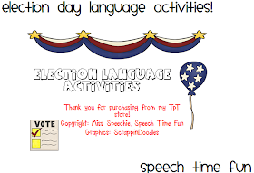 I was searching online today for vocabulary/language ideas for the upcoming election. Many of my students are discussing the election in social studies. I was not thrilled with what I saw out there. It did not seem to address my specific skills/needs of my students in terms of speech & language. Therefore, I created my own!